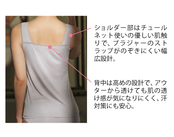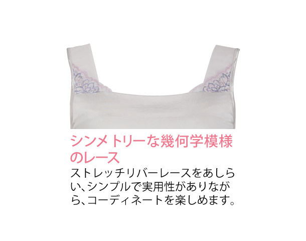 | 組成表示 | 身生地:再生繊維(リヨセル)60%、ナイロン40% チュール部:ナイロン80%、ポリウレタン20% レース部:ナイロン、ポリエステル、ポリウレタン、綿 テープ部:ナイロン90%、ポリウレタン10% |