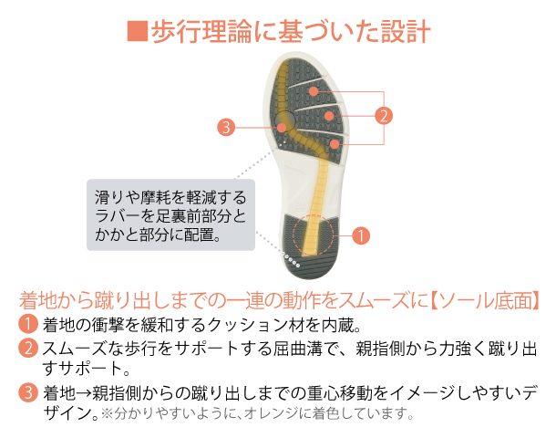 組成表示 | 甲材:合成皮革 底材:合成底(白部分)、ゴム底(ダークグレー部分) |