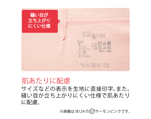 組成表示 | 身生地:綿70%、ナイロン25%、ポリウレタン5% レース部:ナイロン、ポリウレタン |